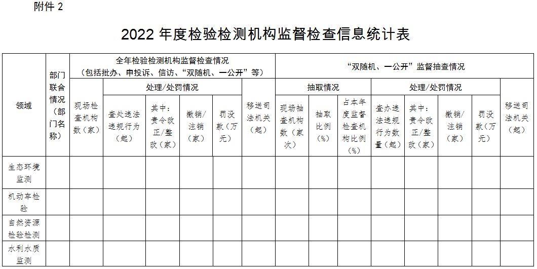 2. 2022年度检验检测机构监督检查信息统计表 市场监管总局